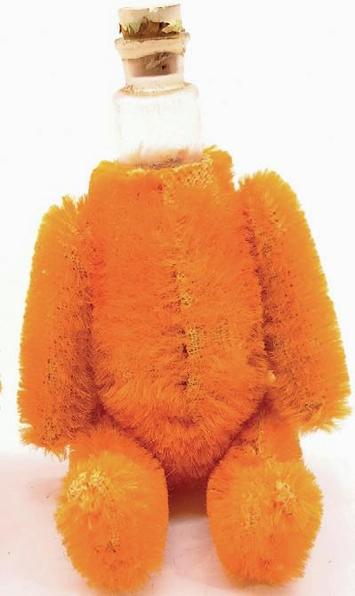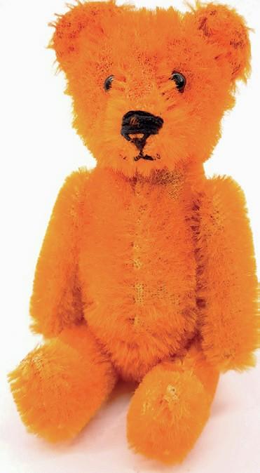 This perfume bottle bear in bright orange mohair with black metal bead eyes and stitching has a guide of £400-600 at Vectis in Stockton-On-Tees on January 13.